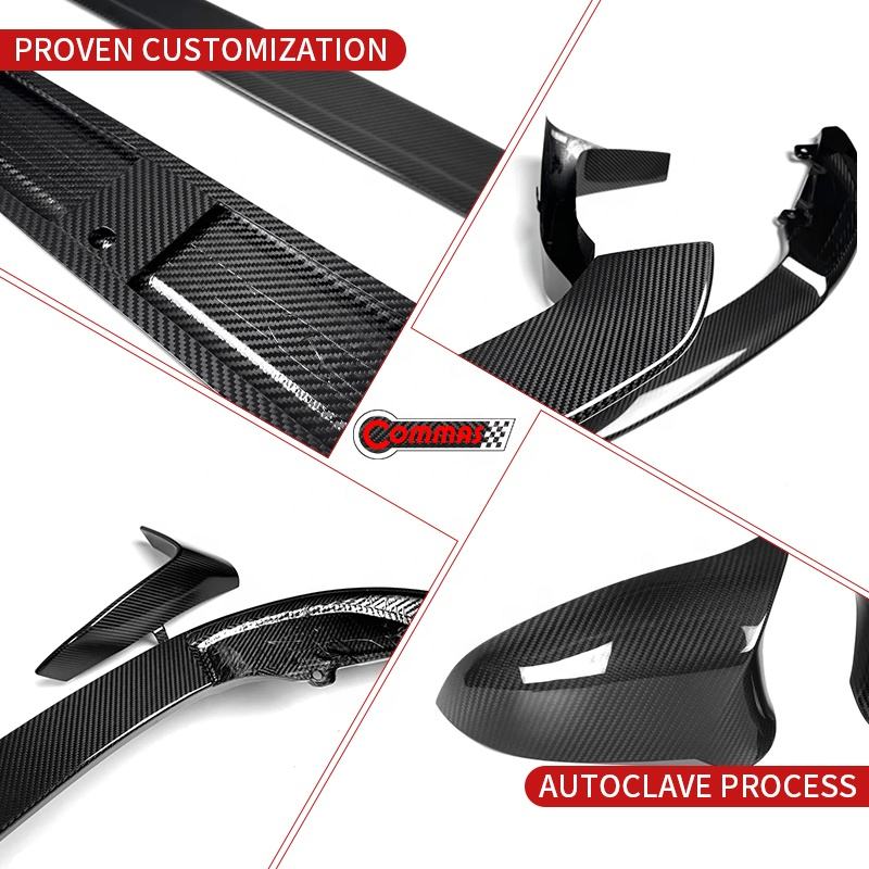 วัสดุคาร์บอนไฟเบอร์แห้ง: การใช้วัสดุคาร์บอนไฟเบอร์แห้งทำให้ชุดแต่งรถมีน้ำหนักเบา แต่แข็งแรงและทนทาน เพิ่มประสิทธิภาพและความสวยงามของรถยนต์
