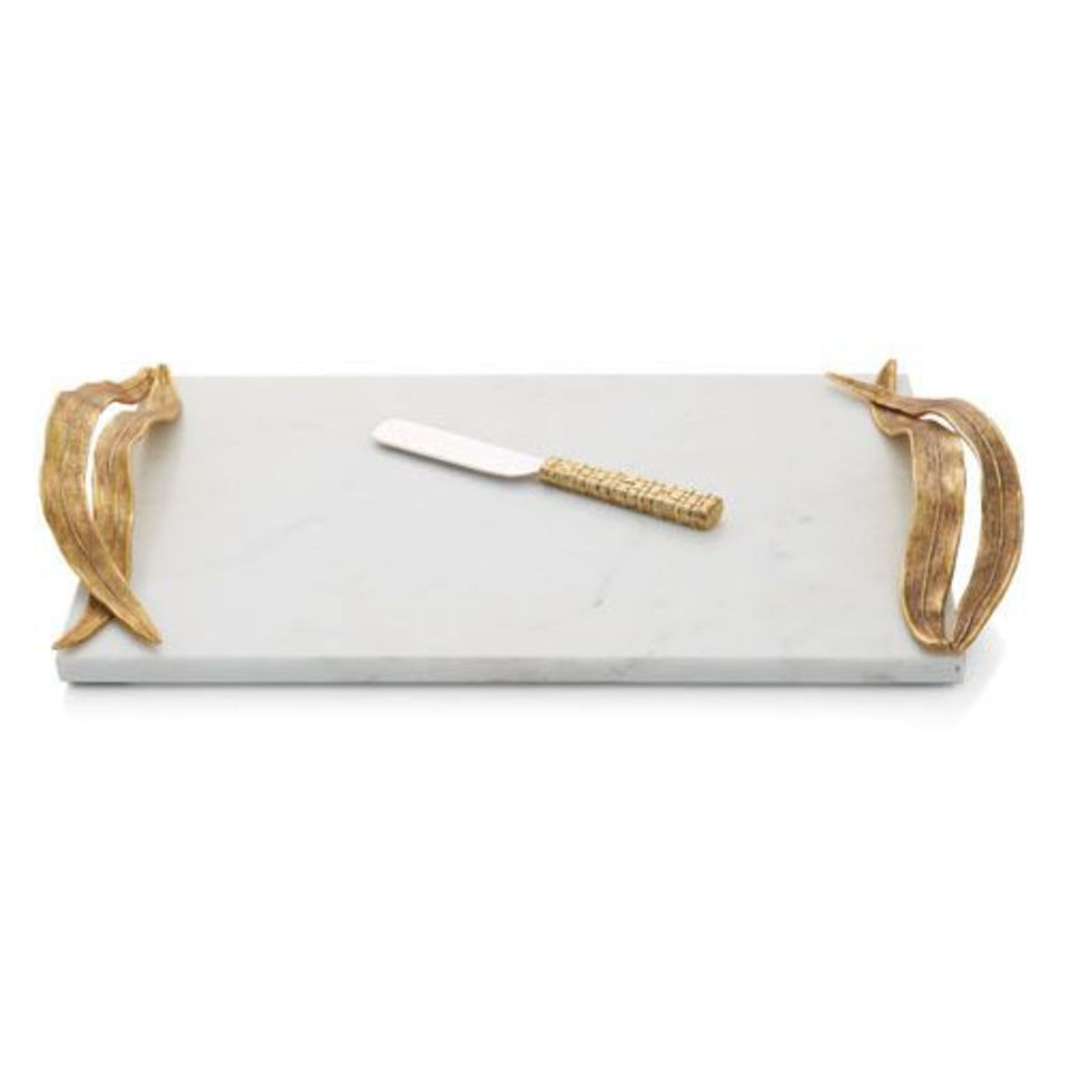 ถาดเสิร์ฟหินอ่อนสีขาวคุณภาพเยี่ยมพร้อมหูจับโลหะสีโรสโกลด์ ถาดเสิร์ฟขนาดใหญ่สำหรับใช้ในบ้านและโรงแรมในราคาถูกที่สุด