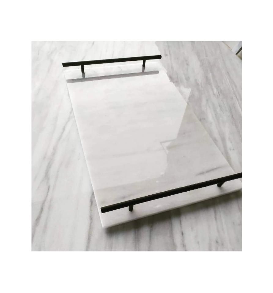 ถาดหินอ่อนทรงกลมคุณภาพดีพร้อมที่จับโลหะถาดเสิร์ฟอาหารหินอ่อนรอมฎอนสําหรับผู้ผลิตและผู้ส่งออก
