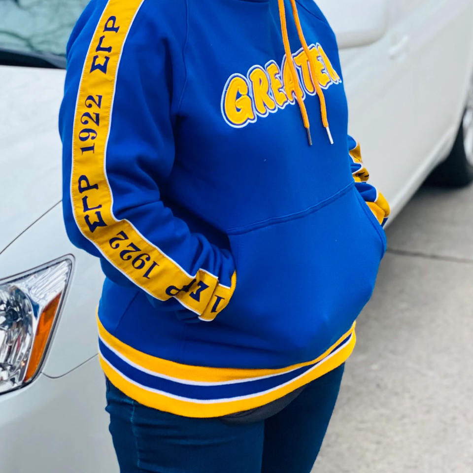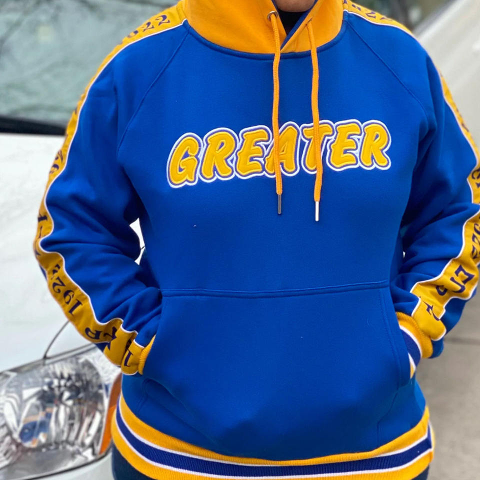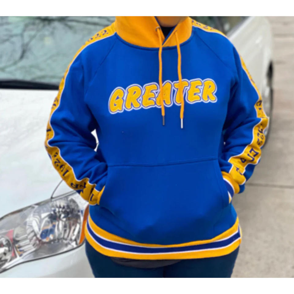 เสื้อฮู้ดทรงเทเปอร์สำหรับฤดูหนาว แขนเสื้อแบบมีเชือกผูก 100% ผ้าฝ้าย ปักลายตราสัญลักษณ์ สไตล์ลำลอง ผ้าฟลีซ มีกระเป๋า ไม่เป็นขุย ใส่ได้ทั้งชายและหญิง รุ่น Divine Nine