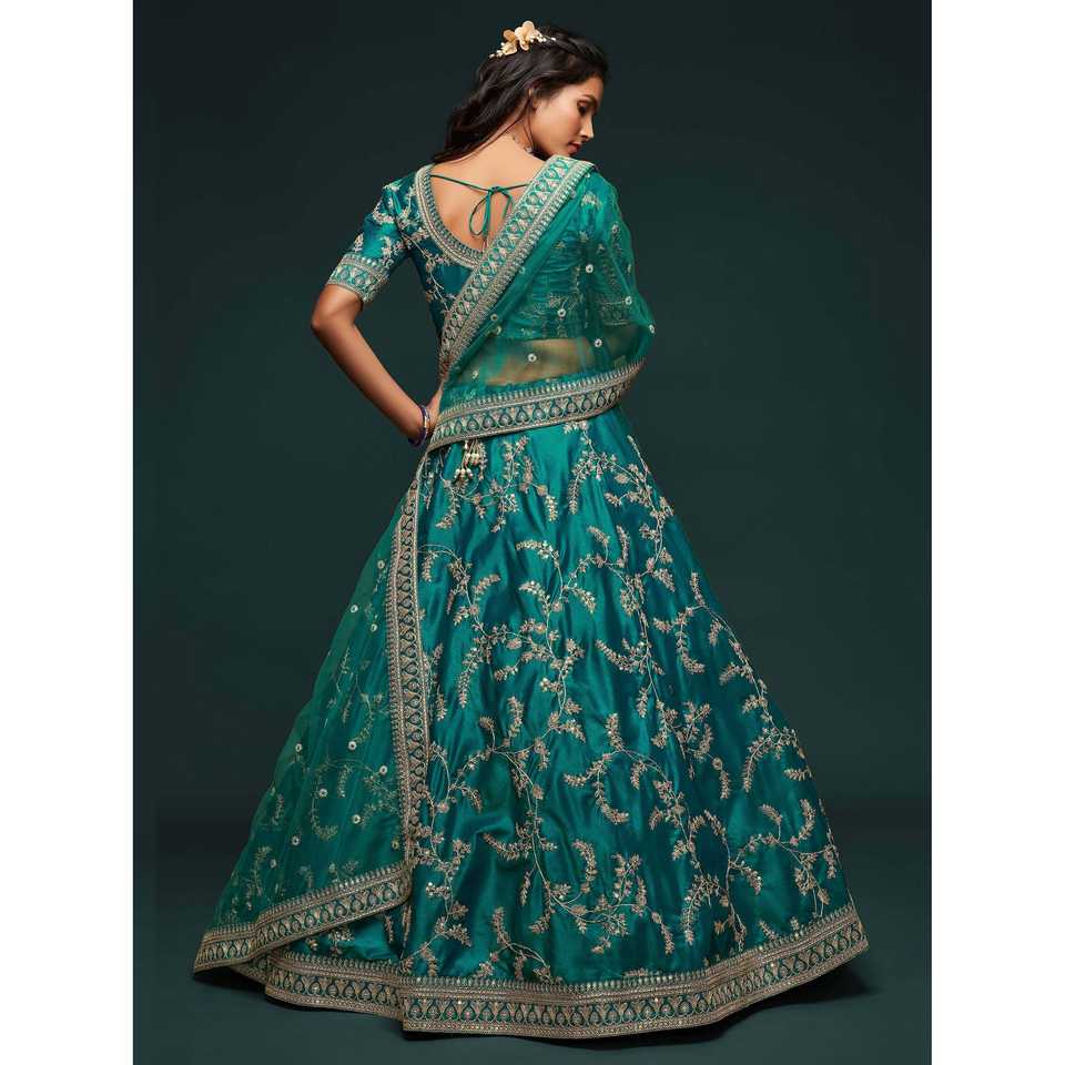 Lehenga choli ศิลปะการปักด้ายสีเขียวที่ยิ่งใหญ่ที่สุด