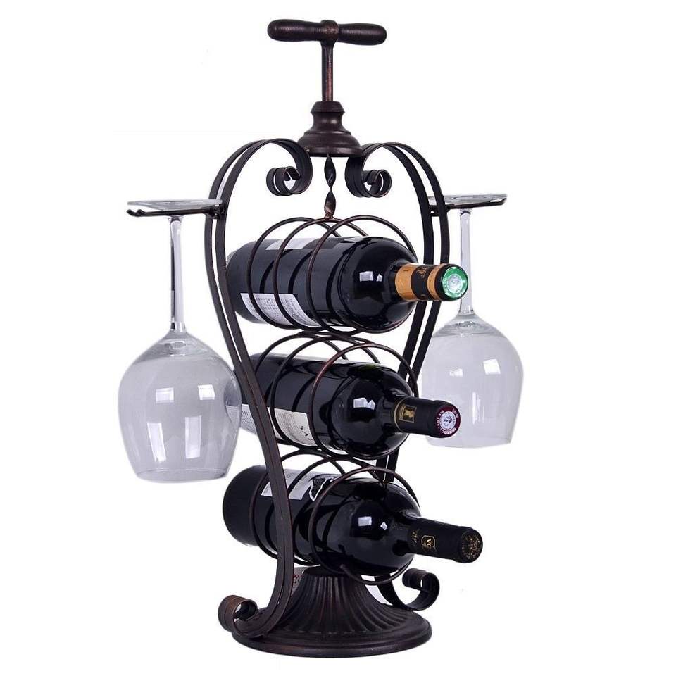 ชั้นวางไวน์ 3 ขวด คุณภาพเยี่ยม ดีไซน์เหล็กสร้างสรรค์ เฟอร์นิเจอร์สำหรับเก็บเบียร์และแชมเปญ