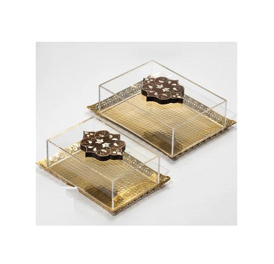 ถาดเสิร์ฟสแตนเลสดีไซน์สวยงาม พร้อมฝาครอบอะคริลิค สำหรับใส่อาหาร ขนมหวาน ในครัว ราคาดีที่สุด