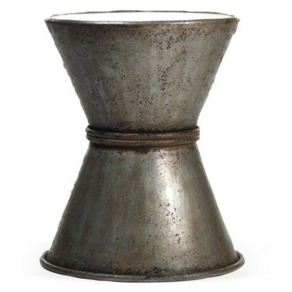 เก้าอี้เหล็กทรงกลองคุณภาพเยี่ยม สไตล์อินดัสเทรียล โต๊ะข้างโลหะตกแต่งด้วยหมุดย้ำ ดีไซน์สีดำเข้ม เฟอร์นิเจอร์เหล็กสีดำ