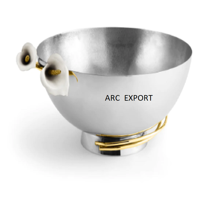 ชามผสมโลหะสำหรับตกแต่งโต๊ะชามออกแบบใหม่ล่าสุดพร้อมชามตกแต่งลายใบลิลลี่สีทอง