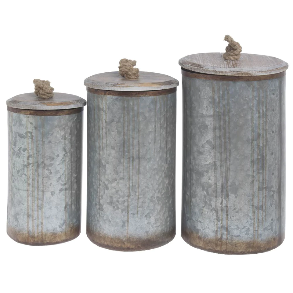ชุดภาชนะเก็บอาหารชุบสังกะสี3ชิ้นสไตล์โบราณภาชนะเก็บอาหารในครัวขายดีที่สุดทำมือ