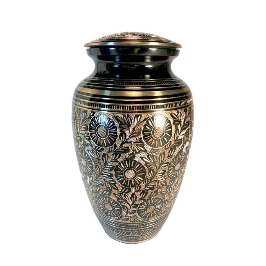 ชื่อผลิตภัณฑ์:โกศใส่ศพทองเหลืองสำหรับผู้ใหญ่วงลายดอกไม้แกะสลักด้วยมือสีแดงและสีทอง