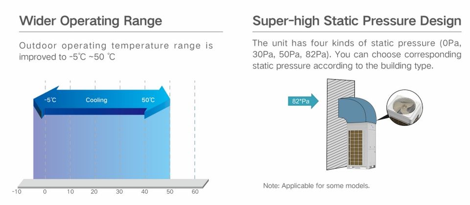 ช่วงการทำงาน:การระบายความร้อน: -15 ~ 52 °C ความร้อน: -30 ~ 24 °C