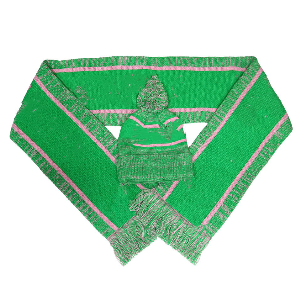 ชุดหมวกไหมพรมและผ้าพันคอแบบกรีกสั่งทำพิเศษ สไตล์ชมรมนักเรียน แบบ unisex พร้อมพู่ห้อยยาว ขอบจั๊มพ์ลายทาง สำหรับฤดูหนาว วัสดุอะคริลิก ให้ความอบอุ่น