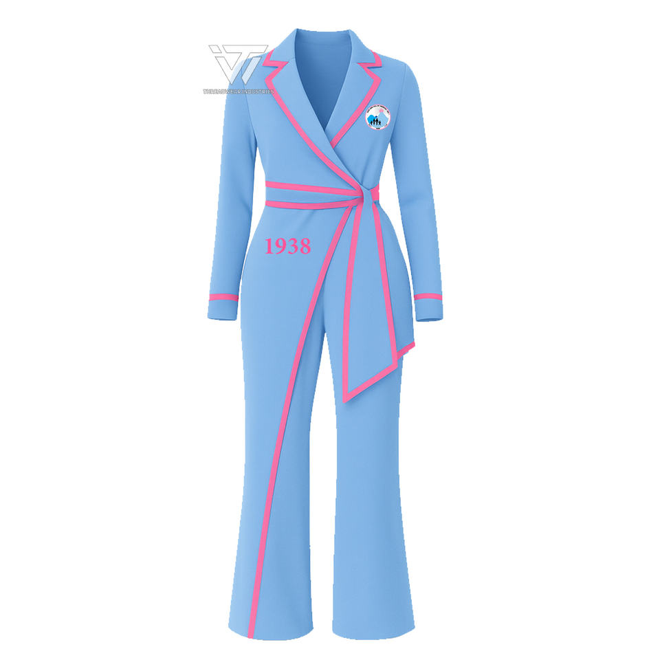 ชุดจั๊มสูทขากว้างปักลายแจ็คและจิลล์จากอเมริกาชุดบอดี้สูทสำนักงานที่สง่างาม