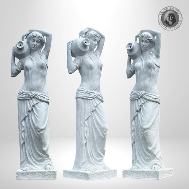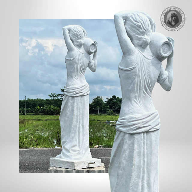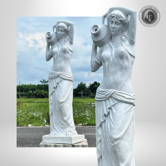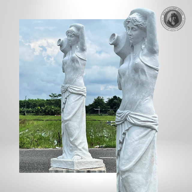 รูปปั้นไฟเบอร์สีขาวคลาสสิก รูปผู้หญิงกรีกถืออัมโฟราบนไหล่ สูง 145 ซม. เหมาะสำหรับตกแต่งพื้นที่ในธีมหรูหรา