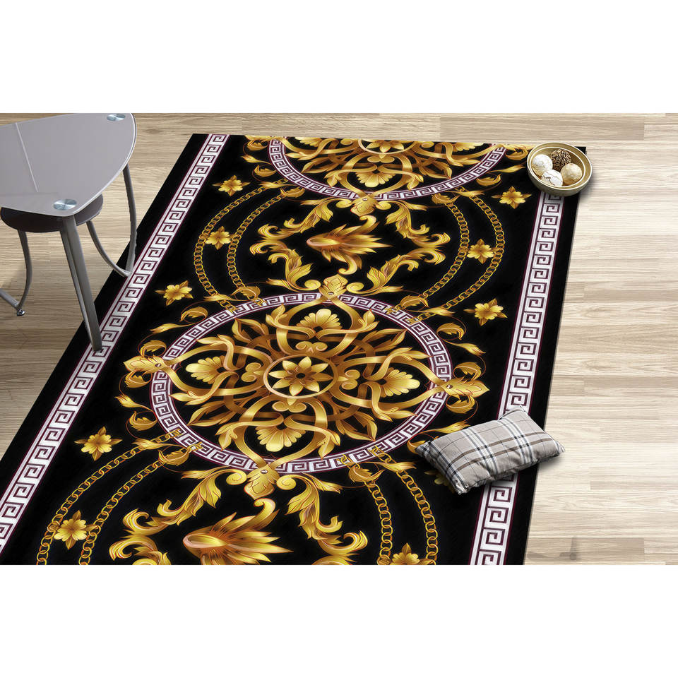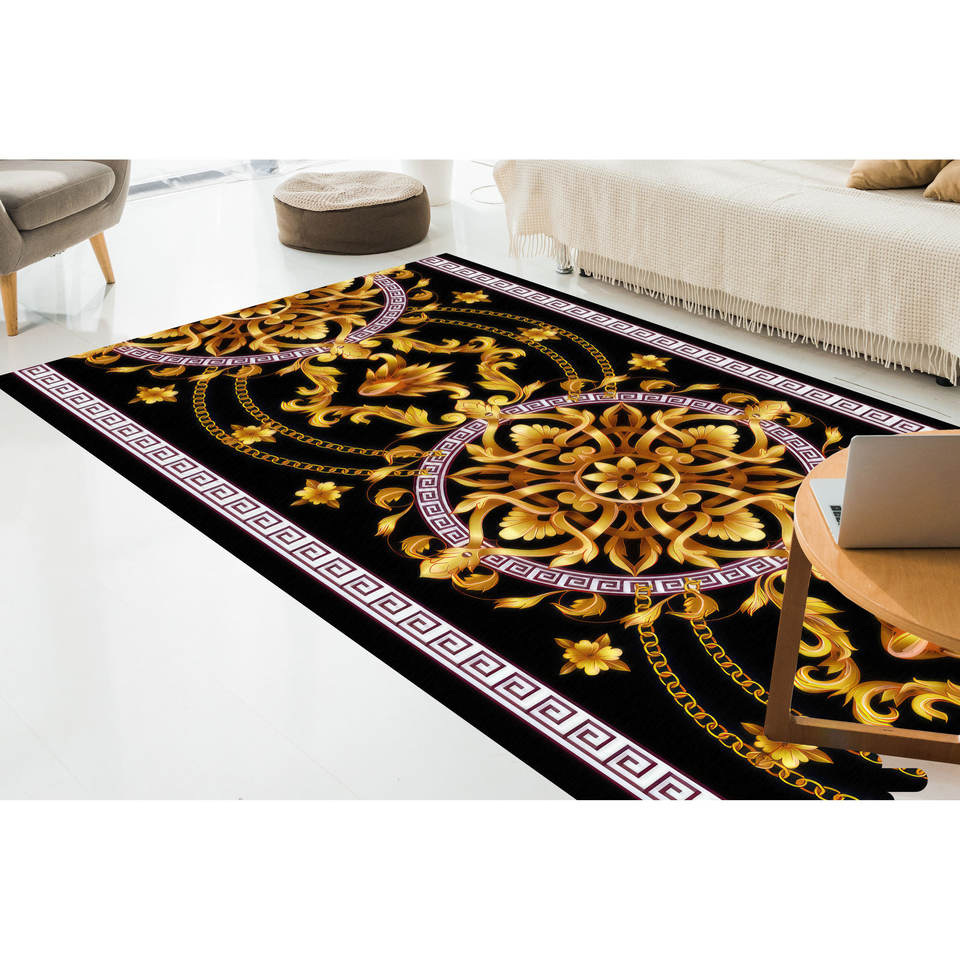 พรมสีดำและสีทองลายกรีก: พรมปูพื้นที่ทันสมัยพรมนุ่มแบบไม่ทอ