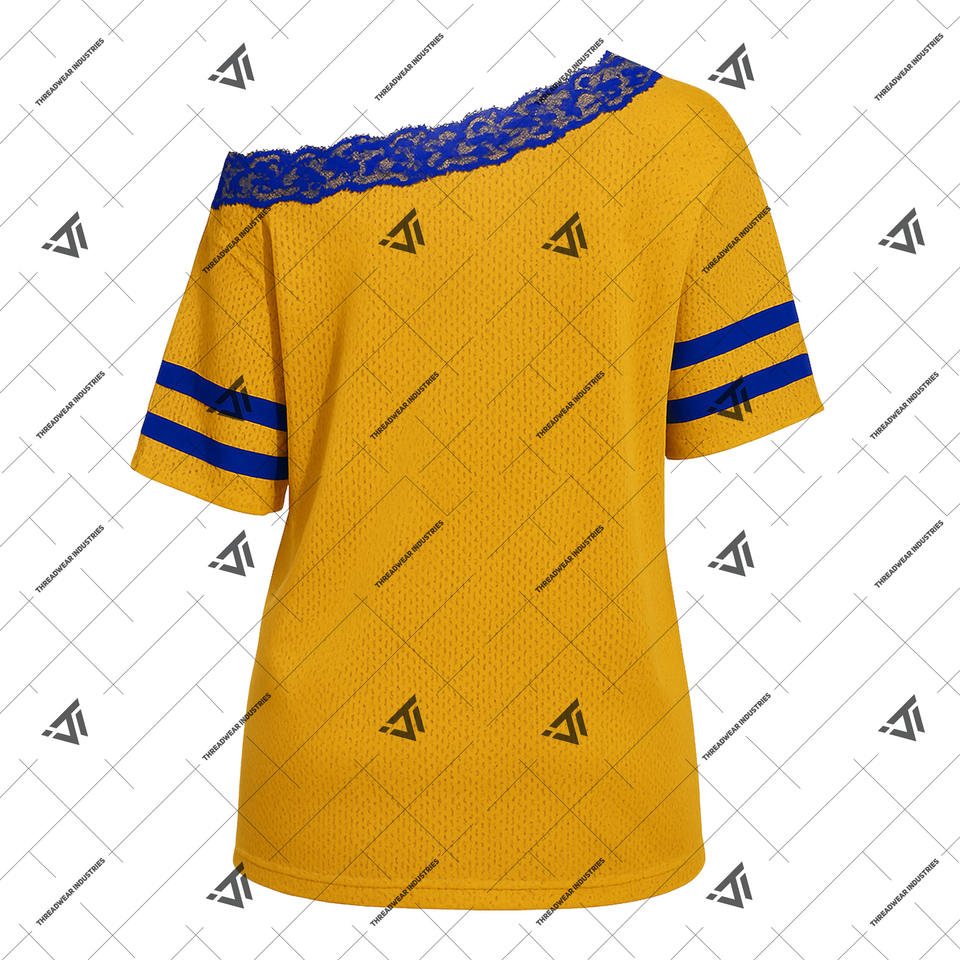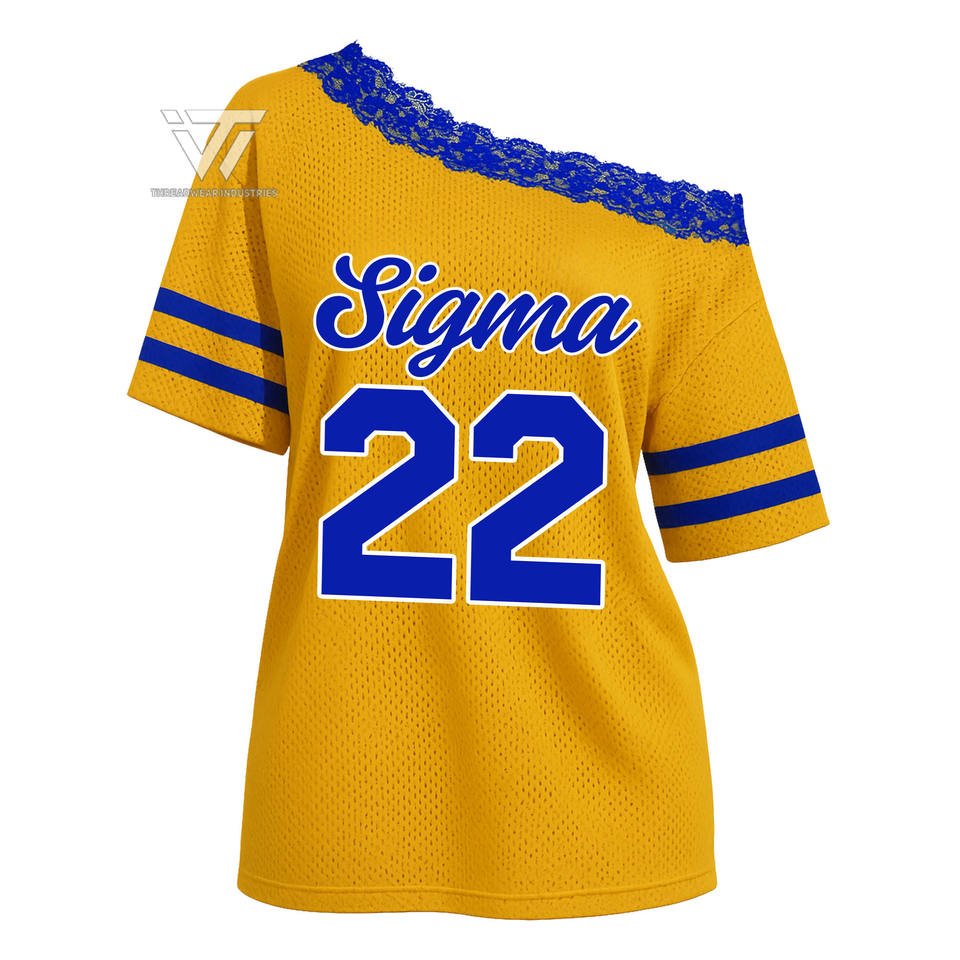 เสื้อเจอร์ซีย์ลูกไม้เปิดไหล่ผ้าตาข่ายระบายอากาศได้ดีลายแกมม่าซิกม่าเสื้อถักสำหรับนักศึกษาชาวกรีก