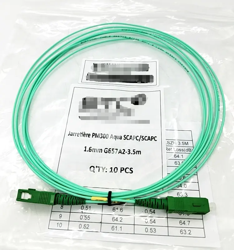 สายแพทช์คอร์ดไฟเบอร์ออปติกสีเขียว 1.6 มม. SCAPC FTTH รองรับ WiFi ความยาว 1.5 ม. 2 ม. 3.5 ม. 4 ม. สีฟ้า สีขาว สายรัดแบบ Garter Optical G657A2
