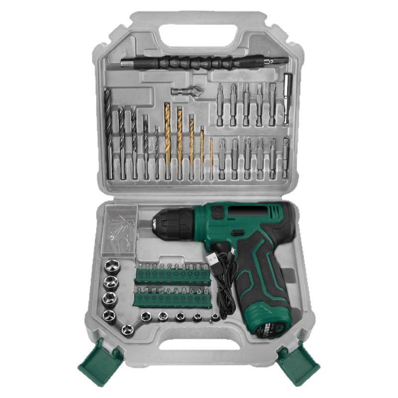 สว่านไร้สายสีเขียว 8V แบบชาร์จได้ หัวจับดอกสว่านแบบไม่ใช้กุญแจ แรงบิด 50 นิวตันเมตร ขนาดดอกสว่าน 13 มม. ไขควงไฟฟ้าสำหรับใช้ในบ้าน พร้อมอุปกรณ์เสริม