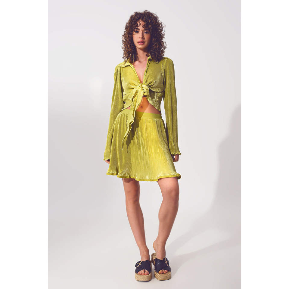 กระโปรงสั้นทรงเอไลน์สีเขียวจับจีบเอวธรรมชาติ
