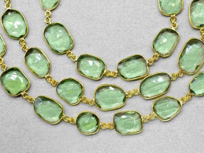Green Amethyst Faceted Bezel Connector Chain Brass Gold Plated Jewelry for May Birthstone Handmade Jewelry for Birthday Gift