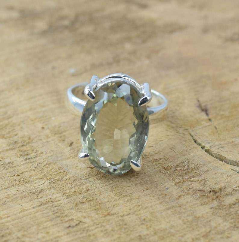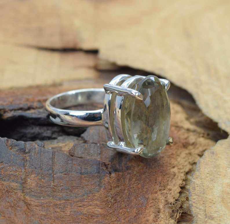 Green Amethyst Prasiolite Sterling Silver Ring Handmade Ring Green Amethyst Gemstones Ring