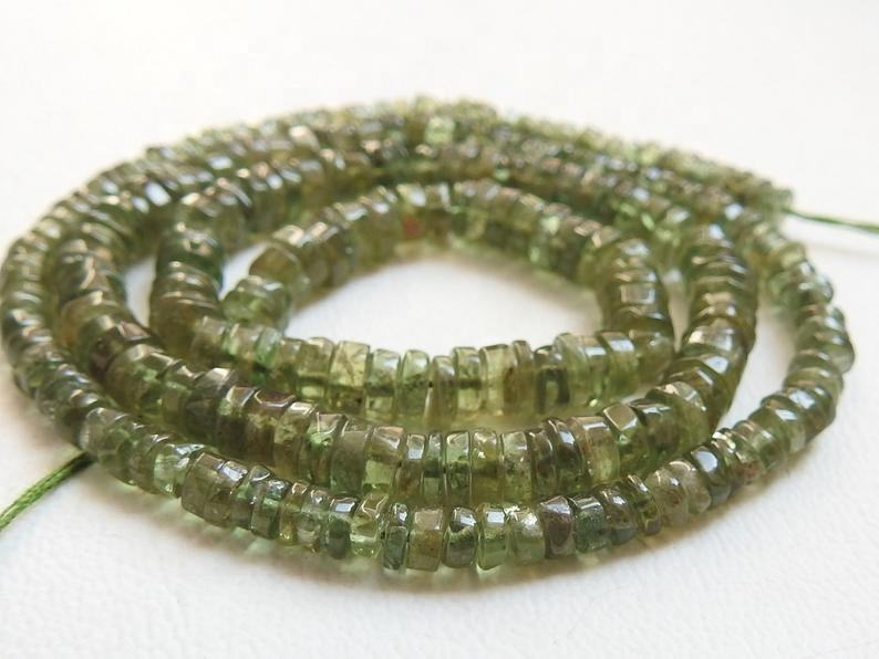 ยางอะพาไทต์สีเขียวแบบเรียบกระดุมรูปเหรียญสร้อยคอลูกปัดทำด้วยมือแบบหลวม PME gemsbeads T1รุ่น16นิ้วเส้น10