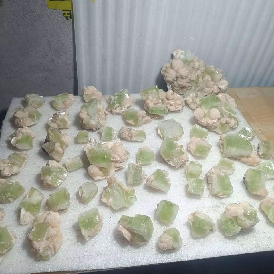 Apophylite สีเขียวกับ steelbitel Geode คลัสเตอร์แร่ธาตุจากอินเดีย