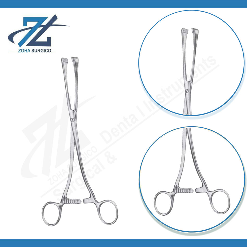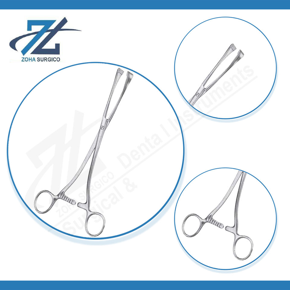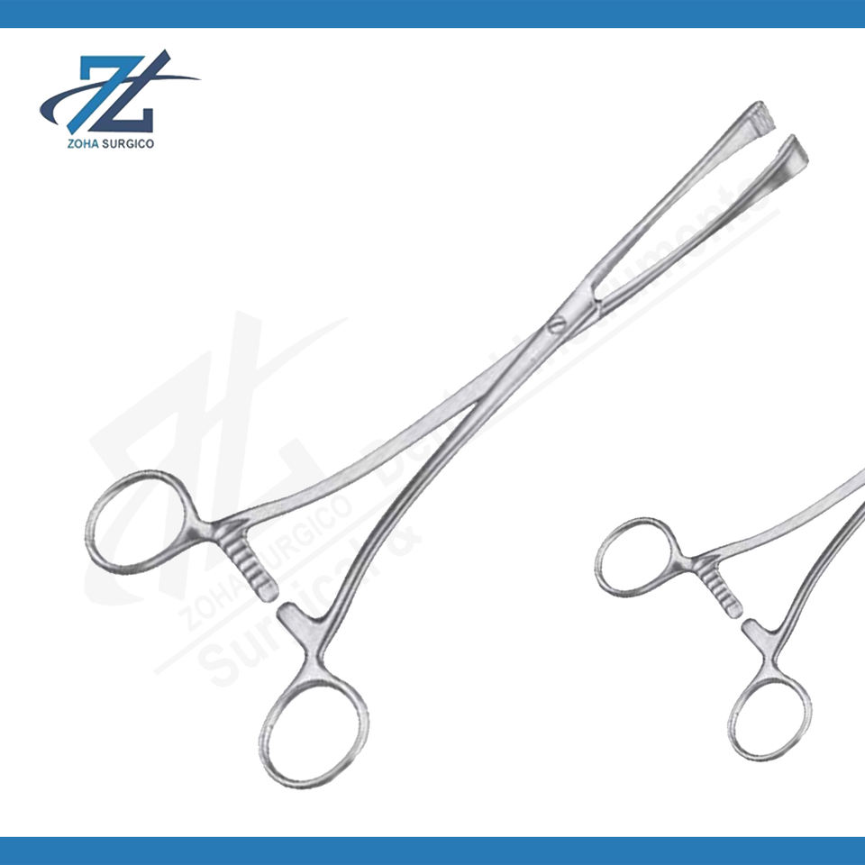 คีมหนีบสเตนเลสสตีลสีเขียวแบบแมนนวล15มม. กรามยาว210มม. เครื่องมือผ่าตัดตรงยาว