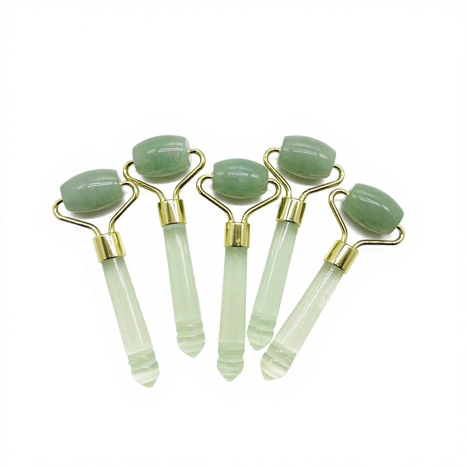 ลูกกลิ้งนวด Aventurine สีเขียวโลโก้ที่กำหนดเองนวดหน้าพร้อมกล่อง