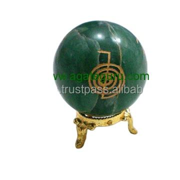 Green Aventurine Sphere Engrave Usai Reiki Healing Ball