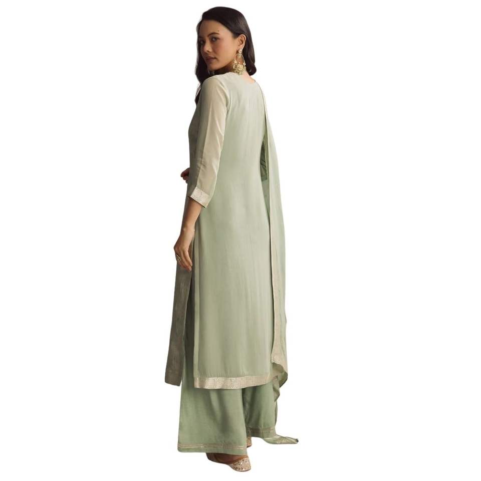 ชุดสูทสีเขียว banarasi georgette Palazzo สำหรับผู้หญิงเสื้อผ้าพื้นเมืองผลิตตามสั่ง