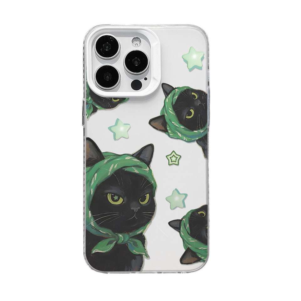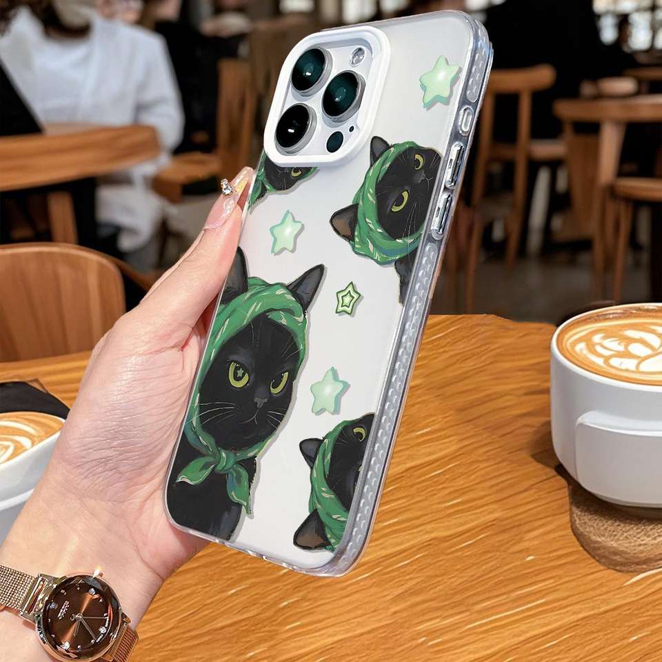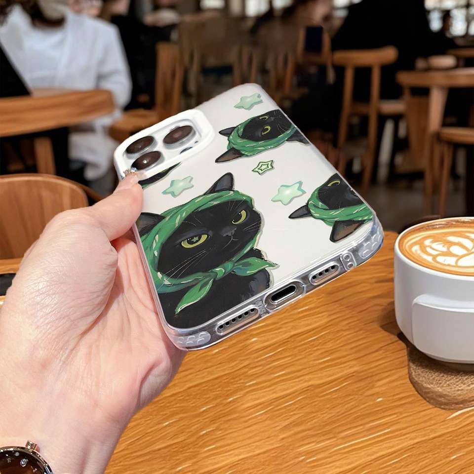 เคสโทรศัพท์กันกระแทก ลายแมวดำบนผ้าพันคอสีเขียว รุ่น TPU สำหรับ 11-17 ป้องกันรอยนิ้วมือ พร้อมป้องกันเลนส์
