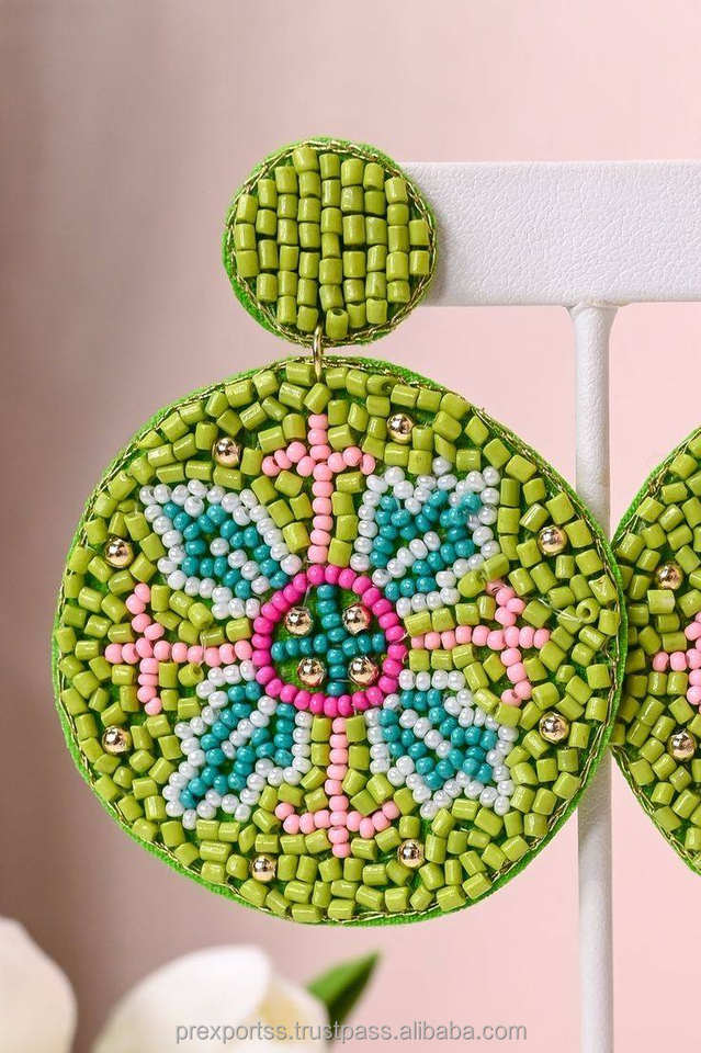 ต่างหูห่วงประดับลูกปัดสีเขียว เครื่องประดับงานปาร์ตี้หลากสีสัน สไตล์โบฮีเมียน แฟชั่นสำหรับทุกเพศ ขายส่ง 2025