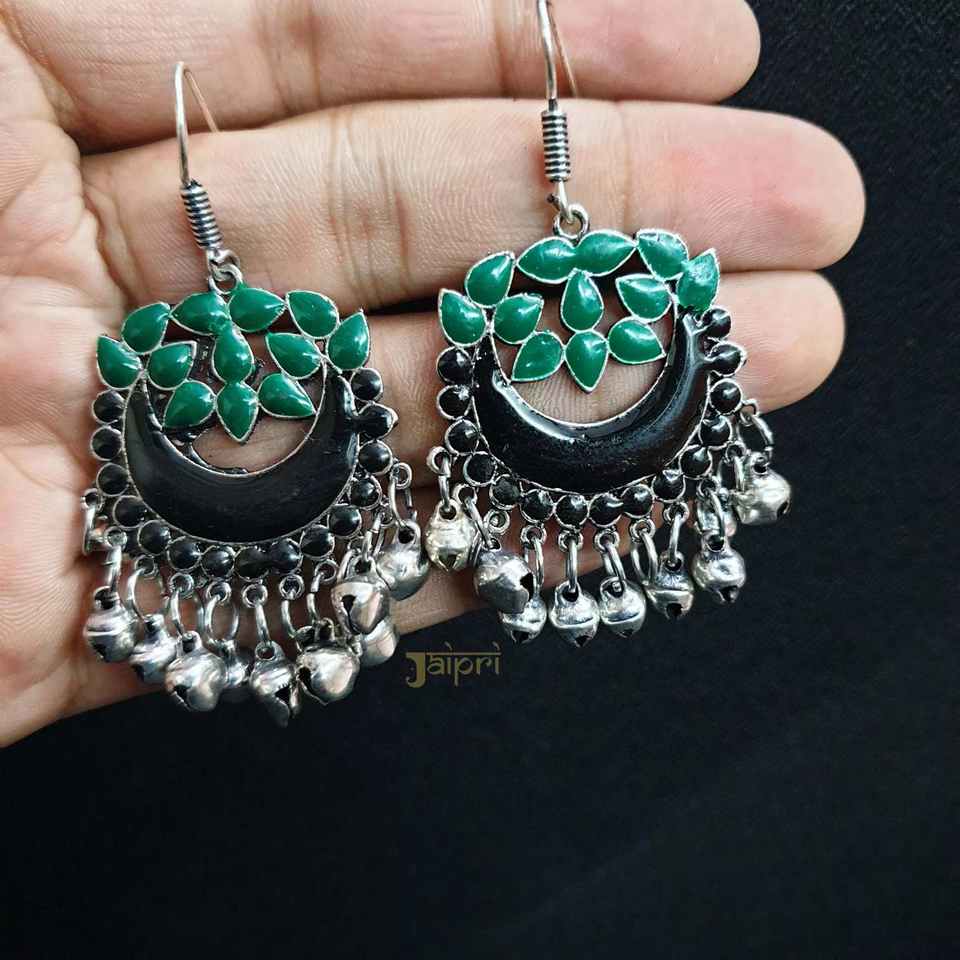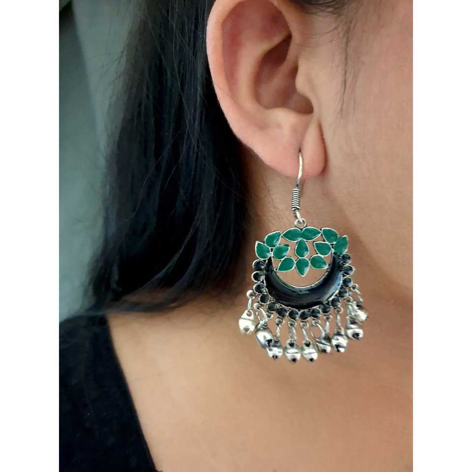 ต่างหูแฟชั่นเงิน afghani chandbali สีเขียวสีดำ