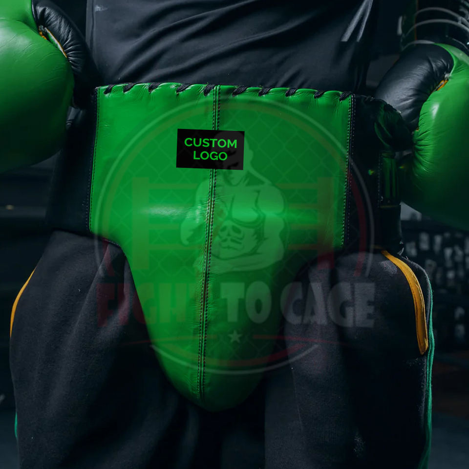 อุปกรณ์ป้องกันขาหนีบสำหรับมวยไทย สีเขียวดำ คุณภาพสูง ผลิตจากหนัง PU ระบายอากาศได้ดี สวมใส่สบาย ปรับแต่งสีได้