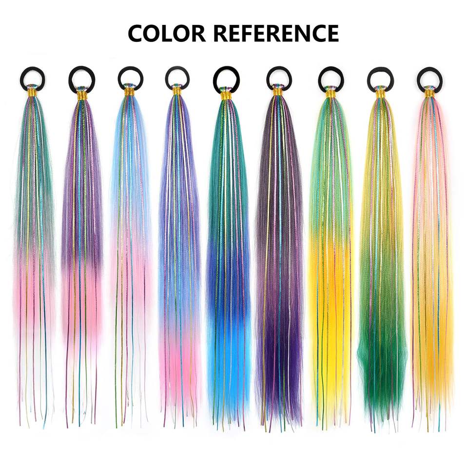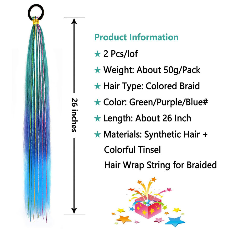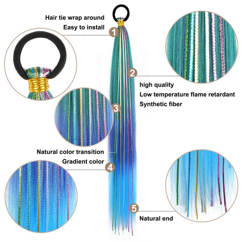 ผมปลอมแบบถักเปียไล่สีเขียว-น้ำเงิน ยาว 26 นิ้ว พร้อมเชือกผูกแบบยืดหยุ่น ทรงตรงเรียบ แบบพันรอบ