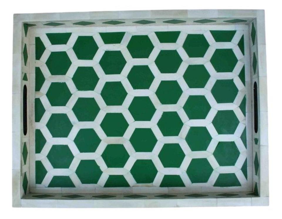 ถาดฝังกระดูกสีเขียวแผ่นรองจานสำหรับจัดระเบียบบ้านที่ใช้งานได้จริงถาดสำหรับใช้ในชีวิตประจำวันมีสไตล์จากอินเดีย