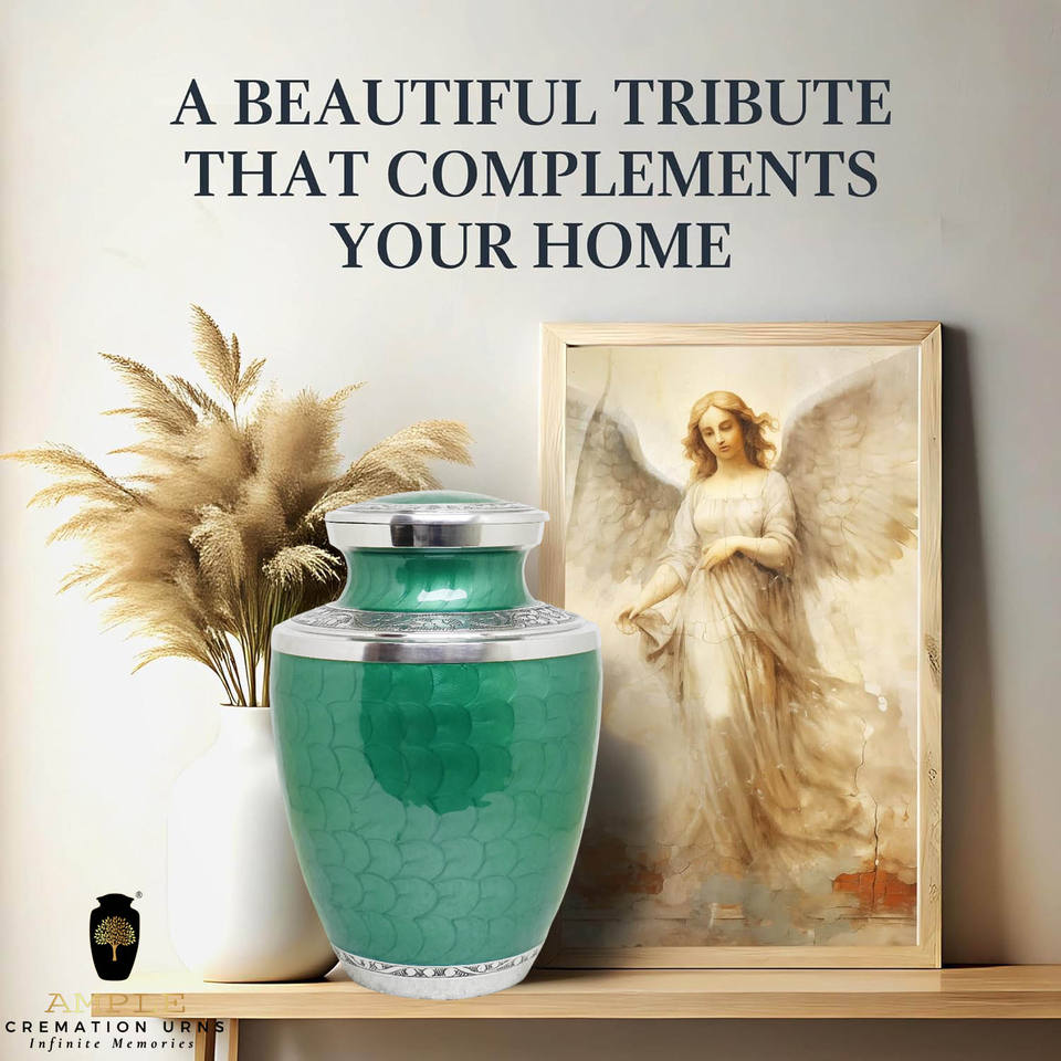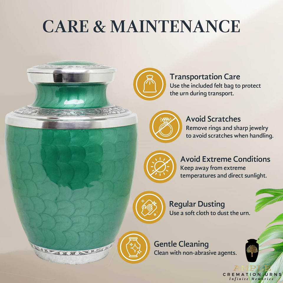 โกศบรรจุอัฐิสำหรับผู้ใหญ่ สีเขียวทองเหลือง ขนาด 220 คิวบิกอินช์ เป็นมิตรกับสิ่งแวดล้อม ทนทาน ทำจากโลหะ พร้อมสลักชื่อได้ตามต้องการ สไตล์ยุโรป/อเมริกา