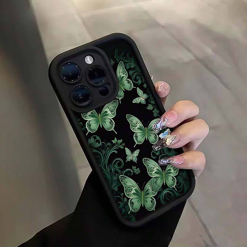 เคสโทรศัพท์มือถือ TPU กันกระแทกสไตล์เลนส์รูปผีเสื้อสีเขียวสำหรับ Iphone8 x XR XS 11 12 13 14 15 16 PRO MAX