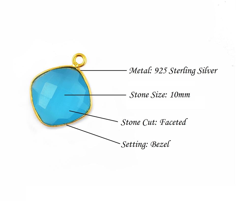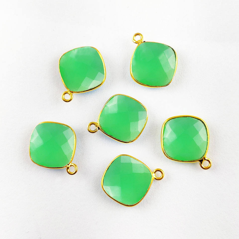 เบาะพลอยคาลซิโดนีสีเขียวขนาด10มม. ชุบทองชุดฝาจี้สำหรับงานหัตถกรรมต่างหูจี้เสน่ห์