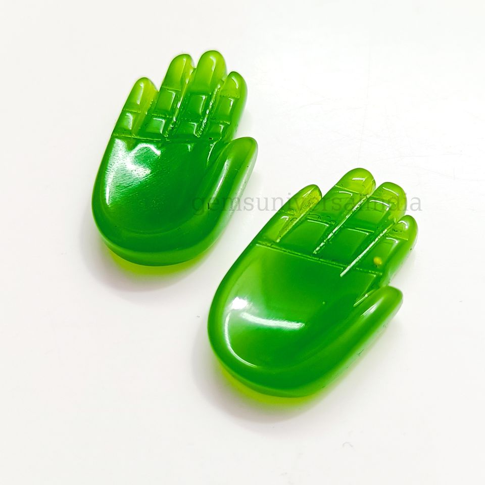 พลอยคาลซิโดนีสีเขียวแกะสลักด้วยมือแฮมซา