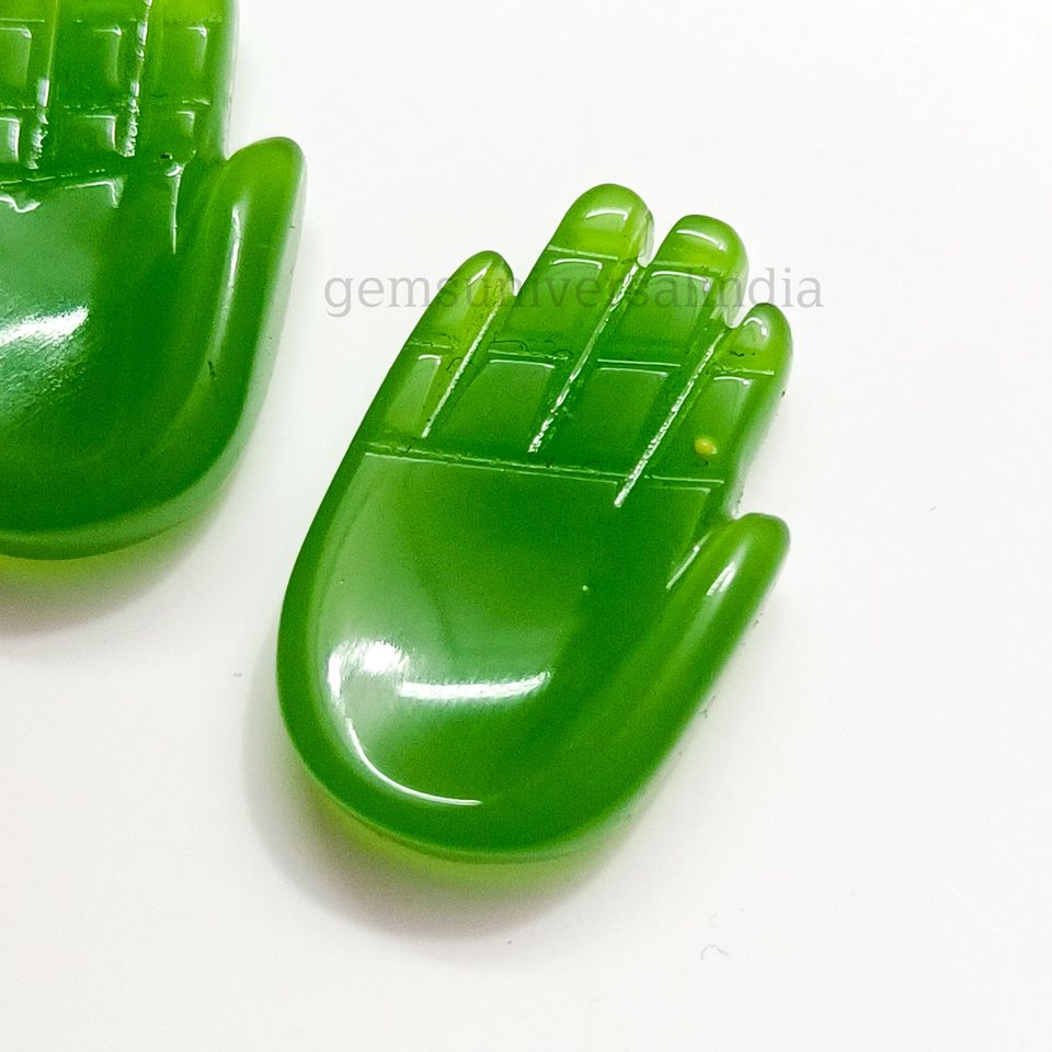 หินโมราสีเขียวอัญมณีแกะสลักมือรูปมือพลอยคาลซิโดนีอัญมณีหลวมแกะสลักมือสำหรับทำจี้ขนาด25มม.