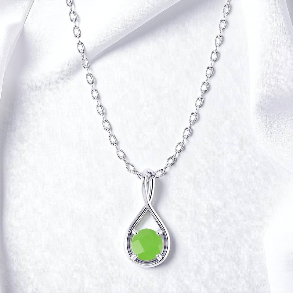 สร้อยคอจี้เหลี่ยมเพชรพลอยรูปลูกแพร์สีเขียวพร้อมโซ่เงินสเตอริงขนาด18นิ้วเครื่องประดับแฟชั่นขายส่ง