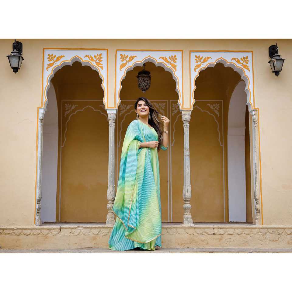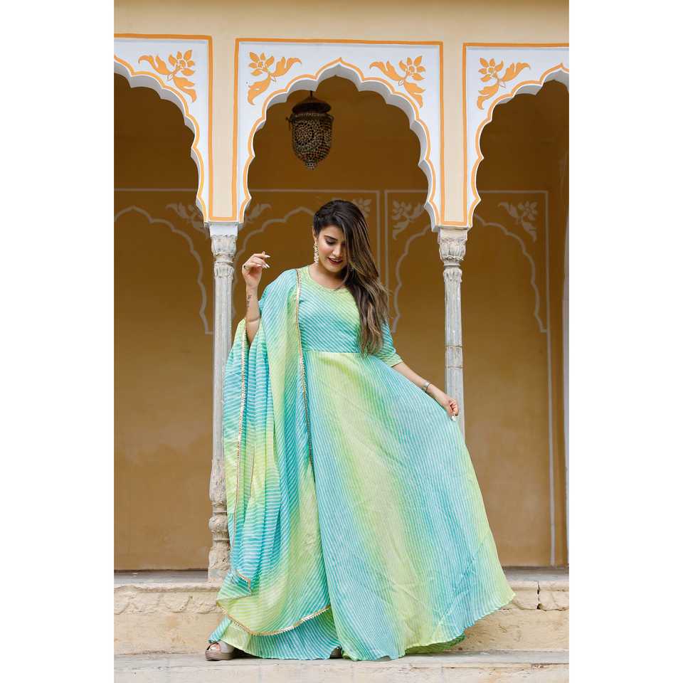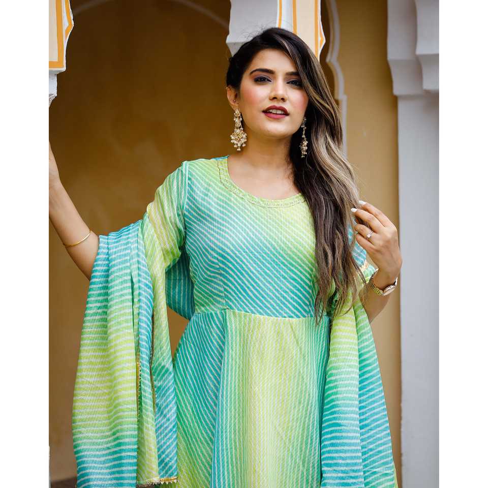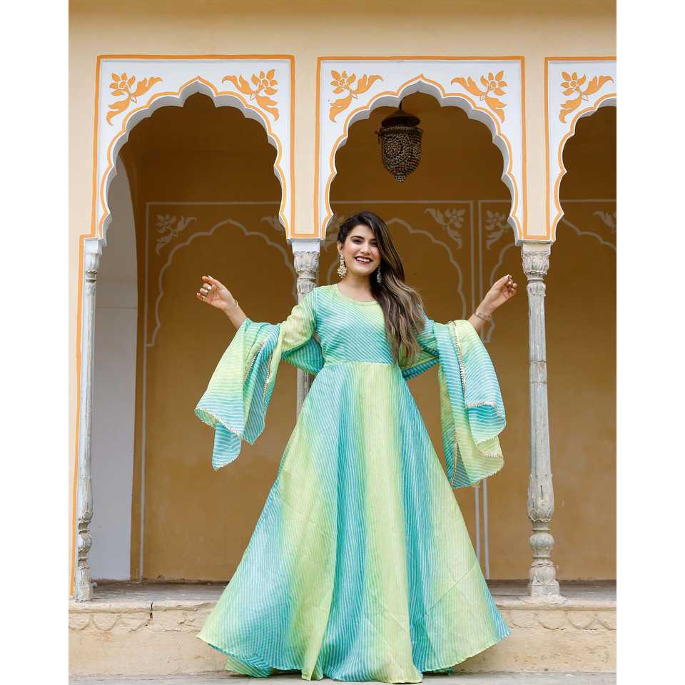 เดรสชีฟองสีเขียวทรงเอไลน์ คอโอ ผ้าระบายอากาศดี ไซส์ XS ตกแต่งด้วยลายโคตะโดริยะ