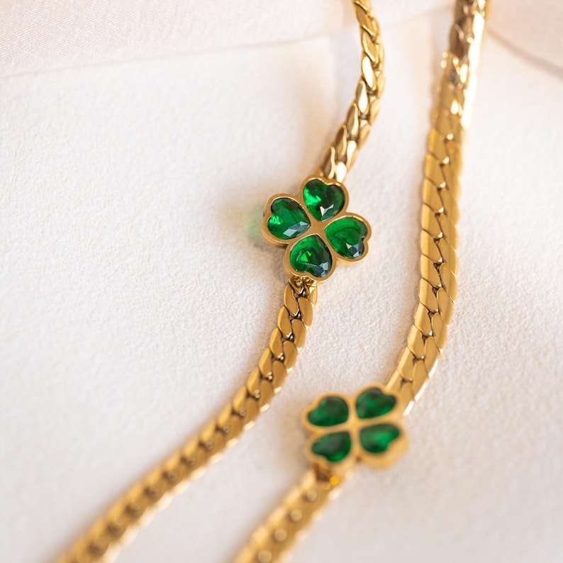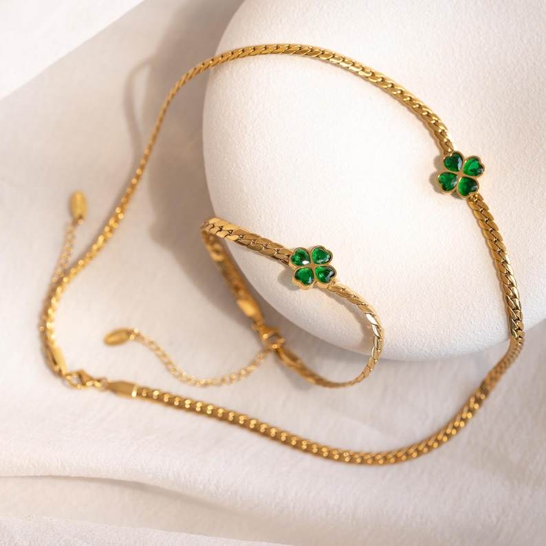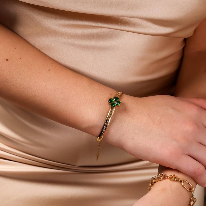 สร้อยข้อมือโคลเวอร์สีเขียวพร้อมประกายเรืองรอง ออกแบบอย่างประณีตด้วยความงดงามที่เปล่งประกาย