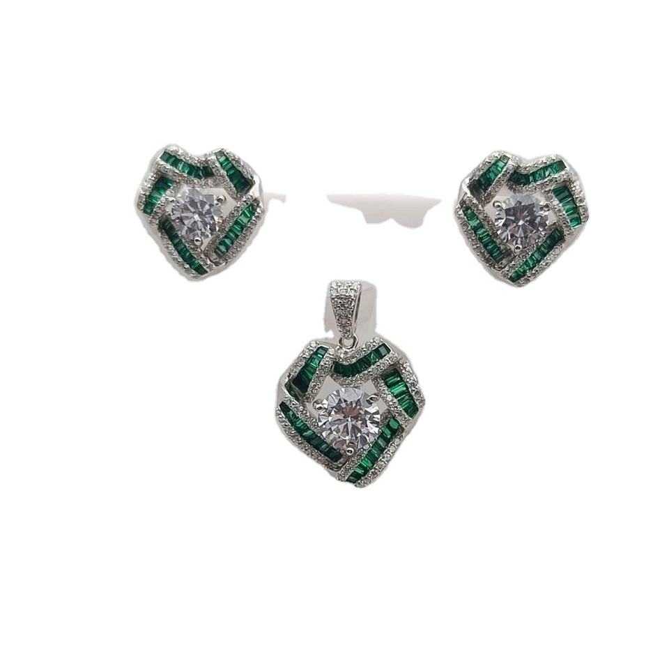 สีเขียวสีลูกบาศก์เพทายเครื่องประดับเงินชุดต่างหูเครื่องประดับเจ้าสาวรักหัวใจจี้สร้อยคอต่างหูชุด