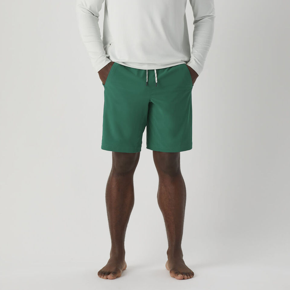 กางเกงว่ายน้ำผู้ชายสีเขียวเรียบง่าย สกรีนโลโก้ได้ แห้งเร็ว ทรงบอร์ดยีนส์ สำหรับฤดูร้อน รุ่นใหม่