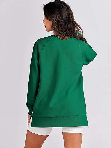 เสื้อสเวตเตอร์คอกลมสีเขียวระบายอากาศได้ดีน้ำหนักเบาเสื้อสเวตเตอร์ผ้าฟลีซเทอร์รี่ใส่ลำลองสำหรับผู้หญิงสำหรับฤดูหนาว