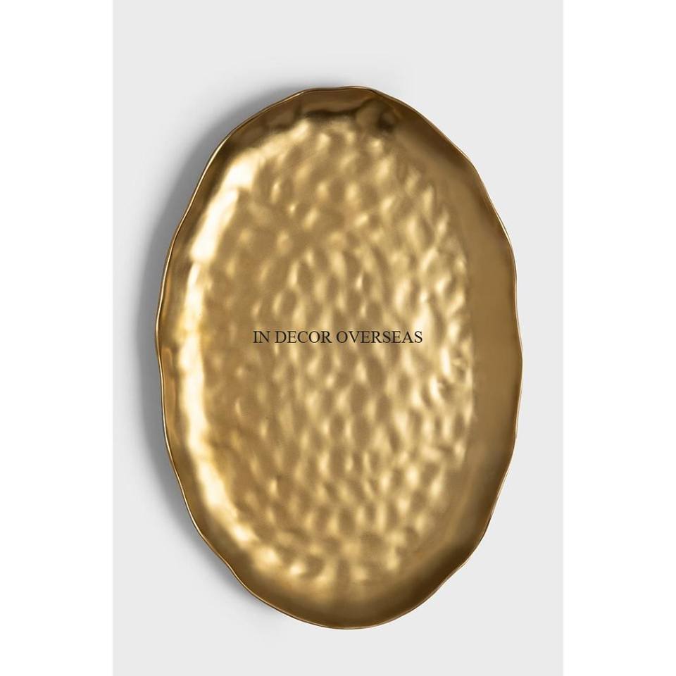 ถาดเสิร์ฟเนื้อโลหะขนาดใหญ่เคลือบผงสีเขียวพร้อมขอบชุบทองออกแบบรูปทรงกลมสำหรับงานหนัก