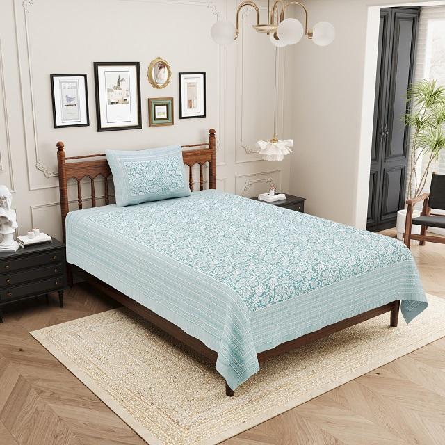 HEAVENBIRDS ผ้าปูที่นอนลายพืชสีเขียวพิมพ์ลายพรีเมี่ยมผ้าฝ้ายพร้อมปลอกหมอน 1 ใบ 300tc