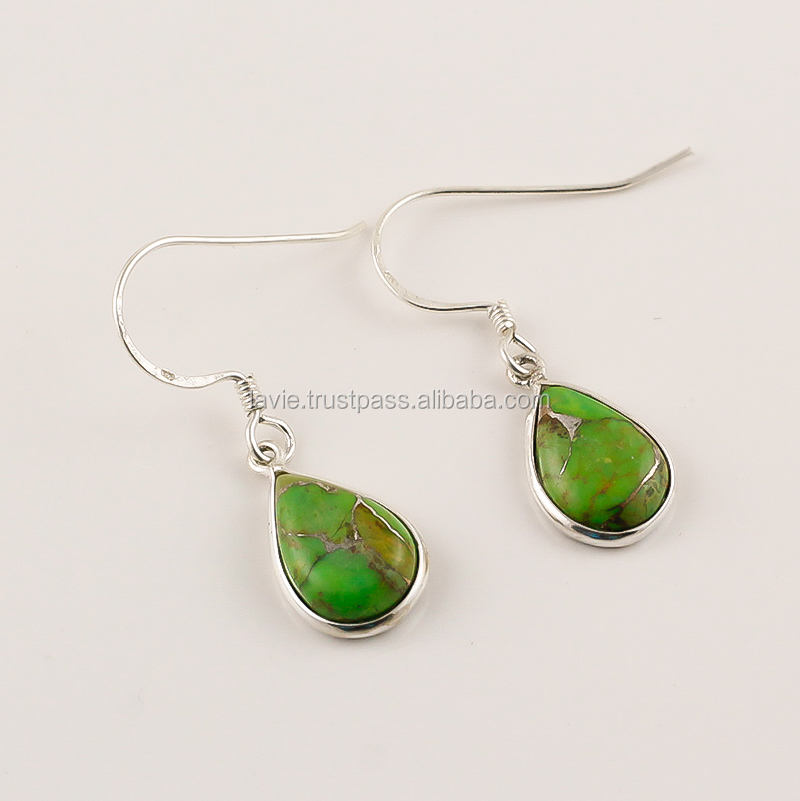 ต่างหูทองแดงเทอร์ควอยซ์สีเขียว เครื่องประดับแฮนด์เมด ขายส่ง ผู้ผลิตเครื่องประดับเงินแท้ 925