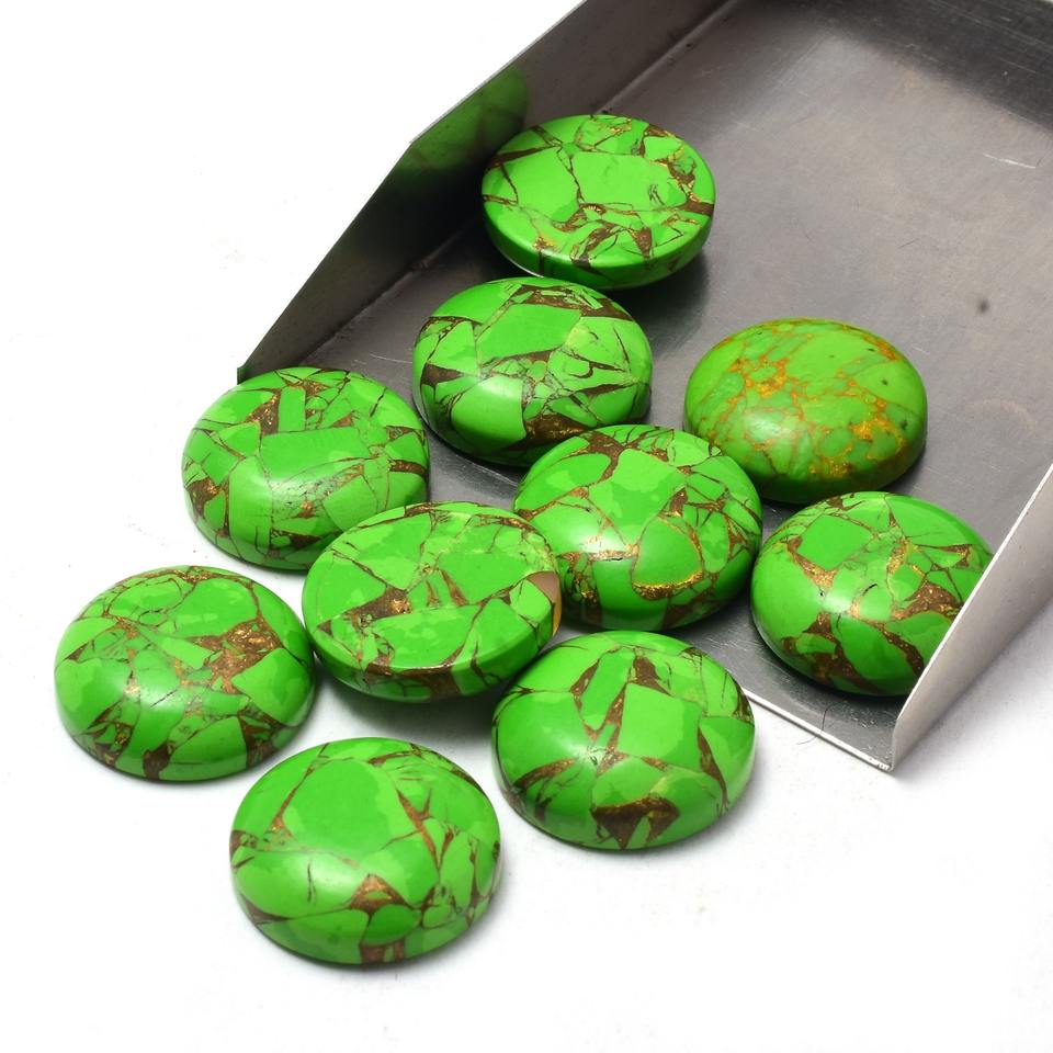 พลอยทองแดงสีเขียวขุ่นทรงกลม3มม.-40มม. อัญมณีทรงแบนแบบหลวมสำหรับทำเครื่องประดับ
