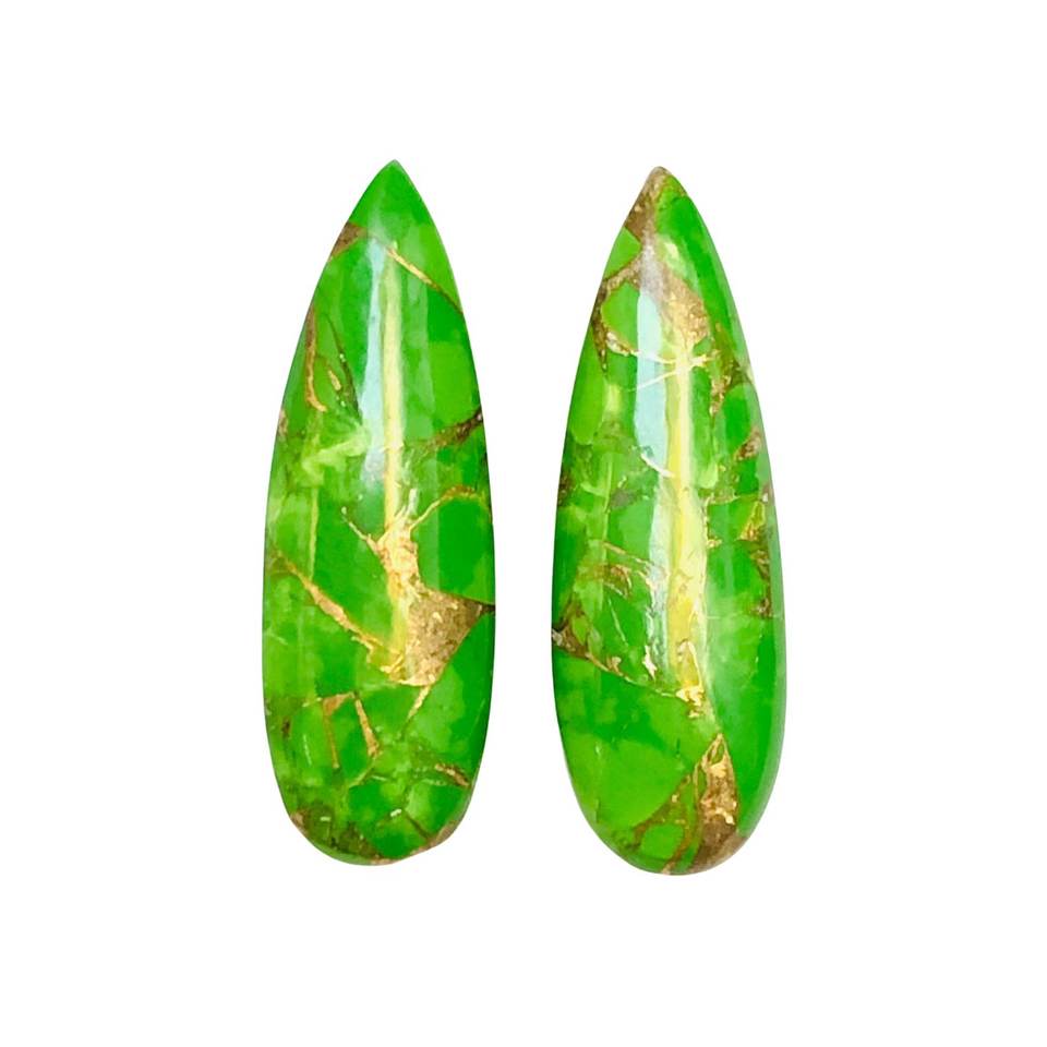 พลอยทองแดงสีเขียวเทอร์ควอยส์ทรงเรียบยาวทรงลูกแพร์อัญมณีอัญมณีทรงหลวมจับคู่หินสำหรับทำเครื่องประดับต่างหูงานประดิษฐ์ทำมือ